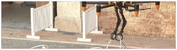 El drone cuenta con dos brazos que pueden llevar diversos tipos de objetos, y tiene la habilidad de cortar cables u operar con pequeños interruptores.