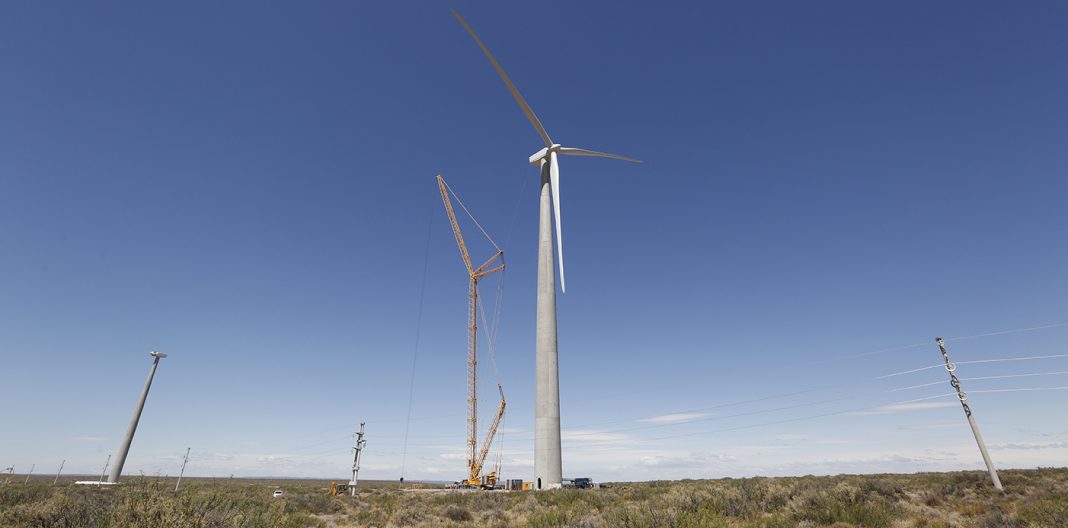 “Las torres tienen 120 metros de altura y para su instalación se van acoplando en seis segmentos. Las dovelas de hormigón se fabrican en Allen y se trasladan hasta aquí, donde se ensamblan. Luego se coloca el generador y las tres palas, que miden 64 metros cada una. Finalmente, en el interior de la torre se procede al cableado y la colocación de otros elementos como el transformador que pasa la energía de 12 Kv a 33Kv”, explicó Alfredo Spongia, gerente de Proyecto de AES.
