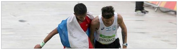 La ronda de mates iba bajando en intensidad. El mediodía acechaba con un sol que hacía el aguante en una jornada más fría que fresca. La entrega de regalos por el día del niño ya había caducado hace rato y era hora de “ponerse a hacer las cosas”, pero, en medio del murmullo familiar, una imagen que llegaba desde el televisor dejó a todos quietos por unos segundos. No era el keniata Eliud Kipchoge cruzando la meta en primer lugar, postal bastante recurrente en cualquier maratón que se mire. No. Tampoco se trataba del etíope Feyisa Lilesa, ni del estadounidense Galen Rupp, segundo y tercero respectivamente en la prueba de Maratón Olímpico. Ninguno de ellos, ni tampoco el cuarto, sexto, décimo ni vigésimo cuarto lugar. “¿Por qué corre de costado?”, alguien interrogó, y ésa era la pregunta de todos.