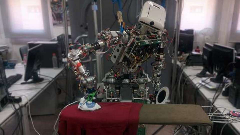 Mientras diversos dispositivos ya efectúan tareas hogareñas como barrer y trapear el piso, un grupo de investigadores de la Universidad Carlos III de Madrid presentó TEO, un robot prototipo de 1,8 metros de alto y 80 kilos que, mediante una cámara 3D de alta resolución, realiza un mapa sobre la prenda para detectar arrugas y proceder a planchar la prenda.