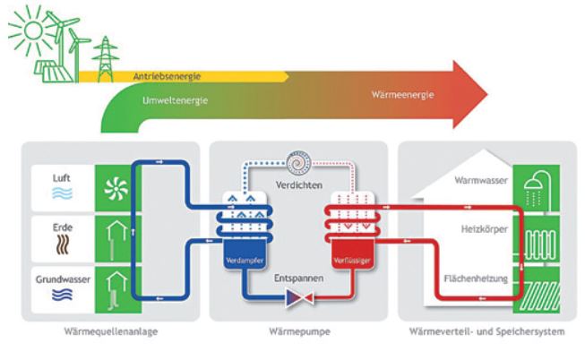Las bombas de calor se proponen como el mejor medio para reducir la emisión de gases de efecto invernadero, en especial por la necesidad de agua caliente y calefacción, que en Alemania supone el 80% de la energía global consumida en los edificios. Además, el incremento de la generación autónoma con paneles solares utilizar la misma energía eléctrica generada en el edificio.